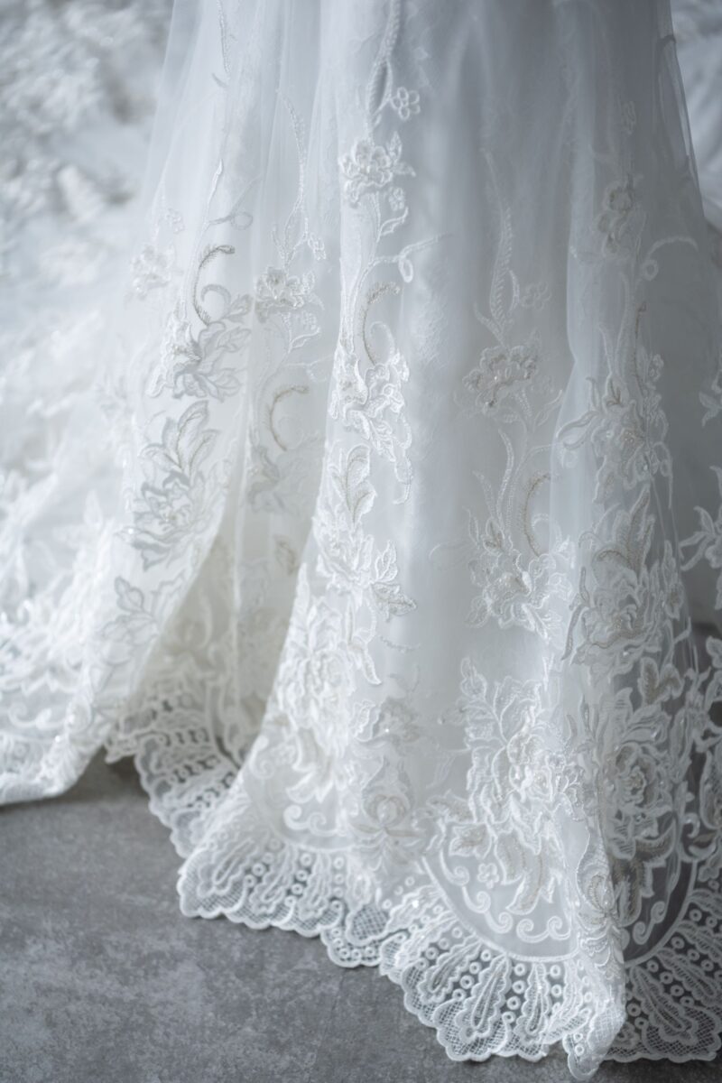 花の刺繍やフラワーモチーフが施されているウェディングドレスは春にぴったり!