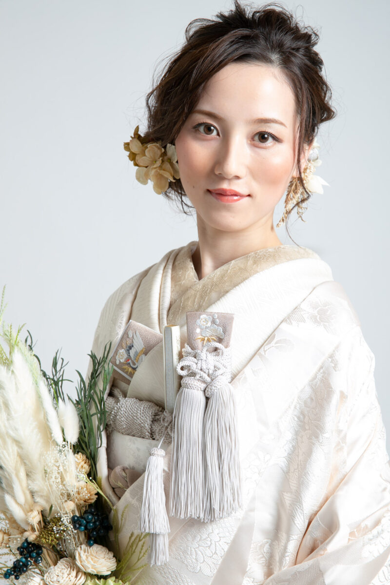 - ヘアスタイル: きっちりした日本髪だけでなく、ゆるやかなウェーブを活かした洋髪や、ドライフラワー・生花を飾ったヘアアレンジ。